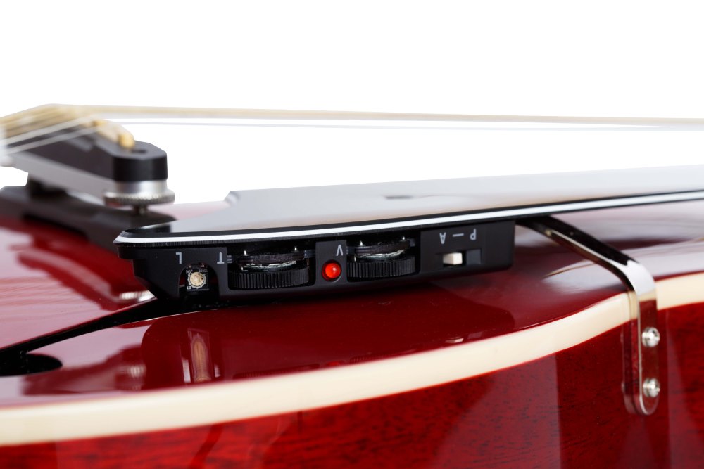 Ovládání hlasitosti a tónu je diskrétně umístěno na pickguard, stejně jako u klasických archtop kytar, což zachovává čistý a přehledný vzhled a zároveň nabízí širokou škálu tónů vhodných pro jakýkoli styl. K dispozici je také low-cut potenciometr, který lze nastavit pomocí malého plochého šroubováku, aby bylo možné přizpůsobit basový rozsah kytary.
