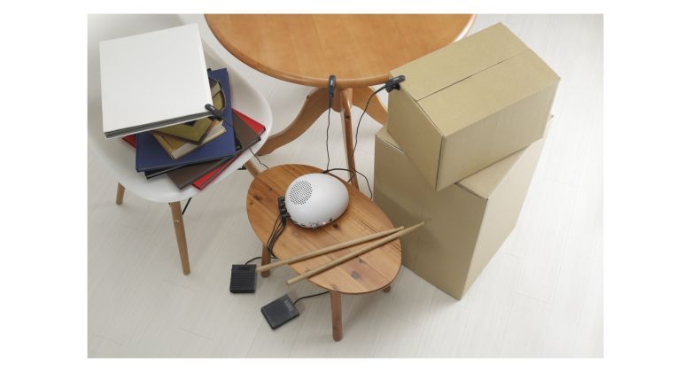 Stačí připojit pomocí klipu v podstatě k libovolnému předmětu a můžete hned začít trénovat hru na bicí!