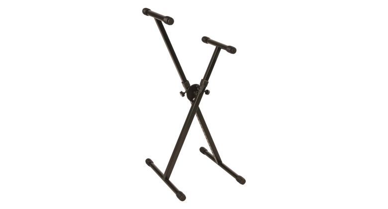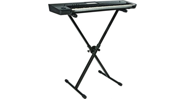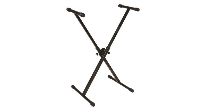 Přenosný stojan "X" na klávesy plné velikosti se skládacími teleskopickými rameny.
