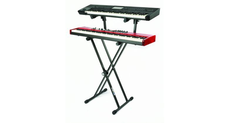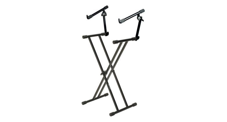 Dvojitý klávesový “X” stojan s nastavitelným sklonem a úhlem druhého patra