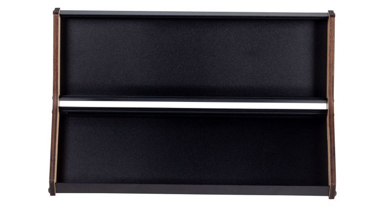 Asymetrické boční panely umožňují překlopit stojan tak, aby byl hlubší nebo vyšší, a je opatřen dřevěnými zakončeními pro větší robustnost a skvělý vzhled.