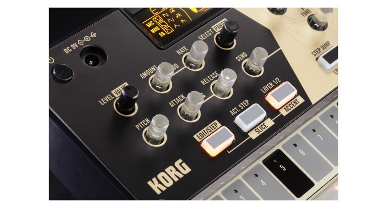 16-krokový sequencer je výborný pro improvizaci. Můžete jednoduše vytvářet patterny pomocí 16 tlačítek, každé odpovídá jednomu ze 16 kroků. Kromě krokového nahrávání sequencer podporuje i nahrávání v reálném čase, kdy můžete vytvářet vzor při jeho přehrávání ve smyčce. Funkce pattern chain přehrává postupně několik sekvenční patterny a dovoluje vám spojit až 16 sekvencí na vytvoření patternu s 256 kroky.