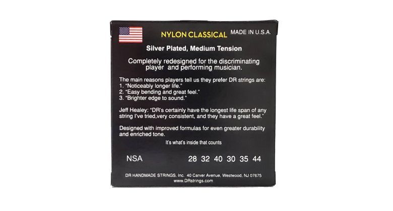 Struny DR CLASSICAL NYLON mají postříbřené měděné vinutí na nylonových jádrech, které zajišťují průrazné, jasné a čisté výšky a hluboké a dunivé basové tóny. Pod prsty zní měkce, ale s trsátkem se výrazně rozjasní.