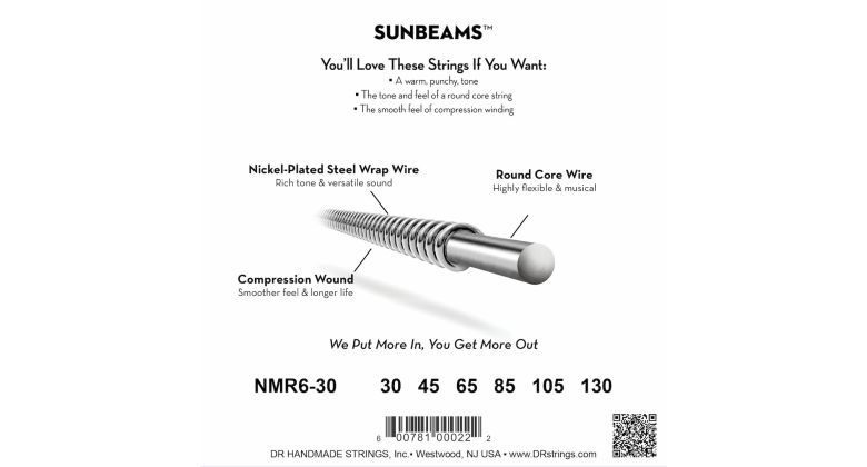 stránky DR StringsSunbeams - Nickel Plated Bass Strings: 6-String Medium to Heavy 30-130