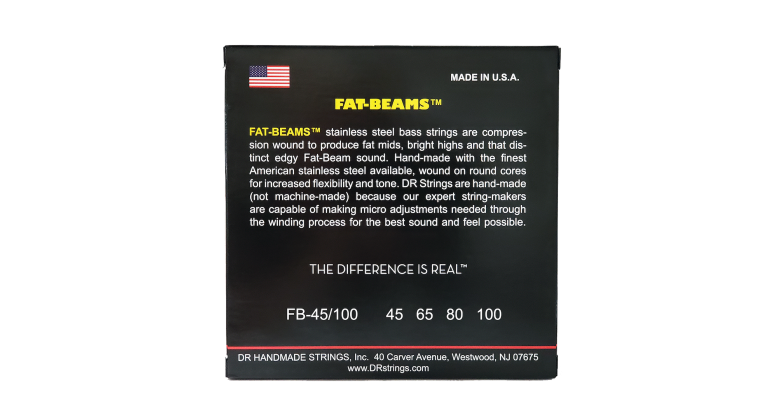 Basové struny FAT-BEAMS™ kombinují vinutí z nejlepší americké nerezové oceli a kulaté jádro, ale jsou vyráběny pomalejším procesem vinutí s vysokou kompresí, aby se dosáhlo výraznějších středů, jasných výšek a supertlustých spodků. Když je potřeba, produkují obecně plnější zvuk s pevným průrazem.