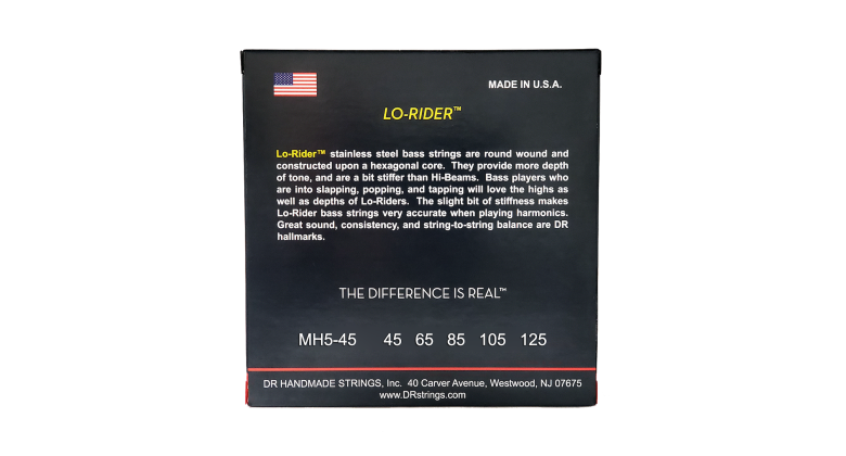 Basisté, kteří milují slap, vytrhávání a tapping, si zamilují výšky a basy strun Lo-Rider. Lehká tuhost basových strun Lo-Rider pomáhá konkrétnosti, když hrajete flažolety. Skvělá konzistence a výborná vyváženost strun jsou základními znaky DR. Struny Lo-Rider poskytují větší hloubku tónu a jsou o něco tužší než Hi-Beams.