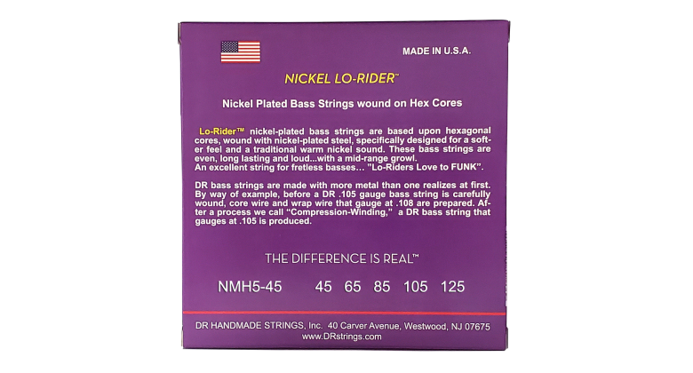Basové struny Nickel Lo-Rider je speciálně zkonstruovány pro měkčí pocit a tradičně vřelý zvuk niklových strun. Tyto basové struny jsou vyvážené, mají dlouhou životnost a jsou hlasité, se středovým průrazem. Excelentní struny pro bezpražcové baskytary. „Lo-Riders milují FUNK.“